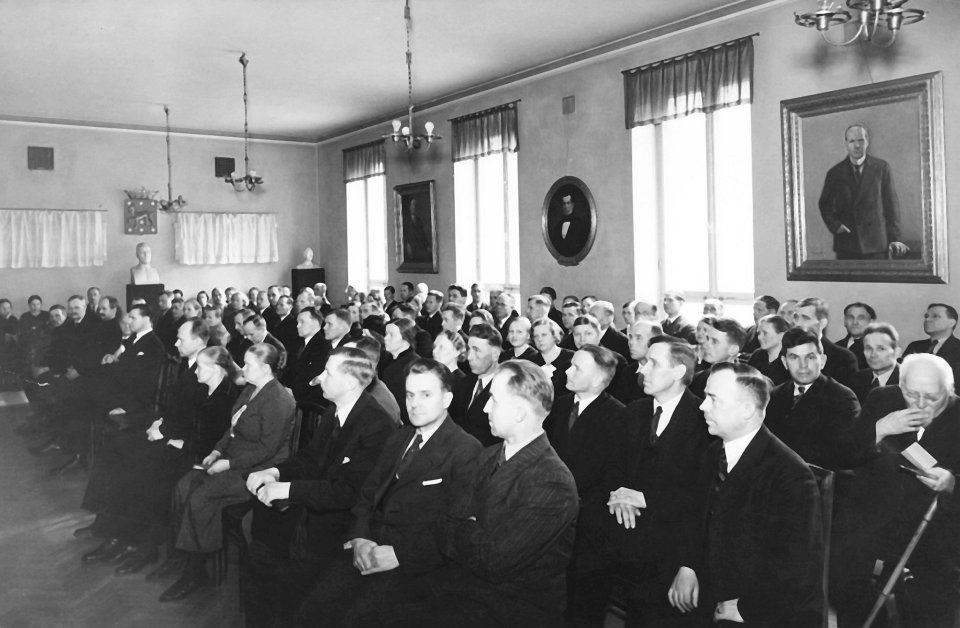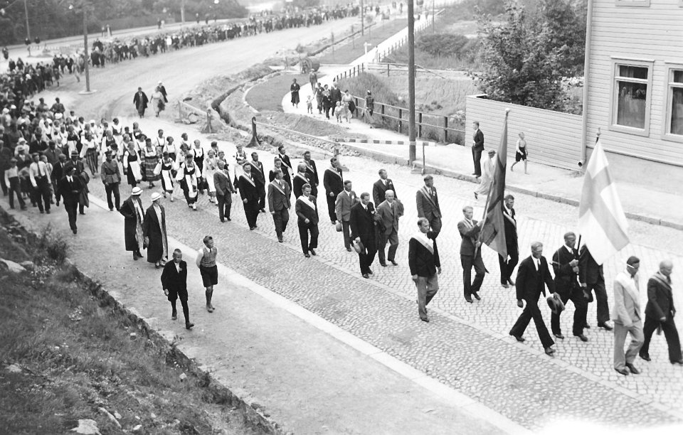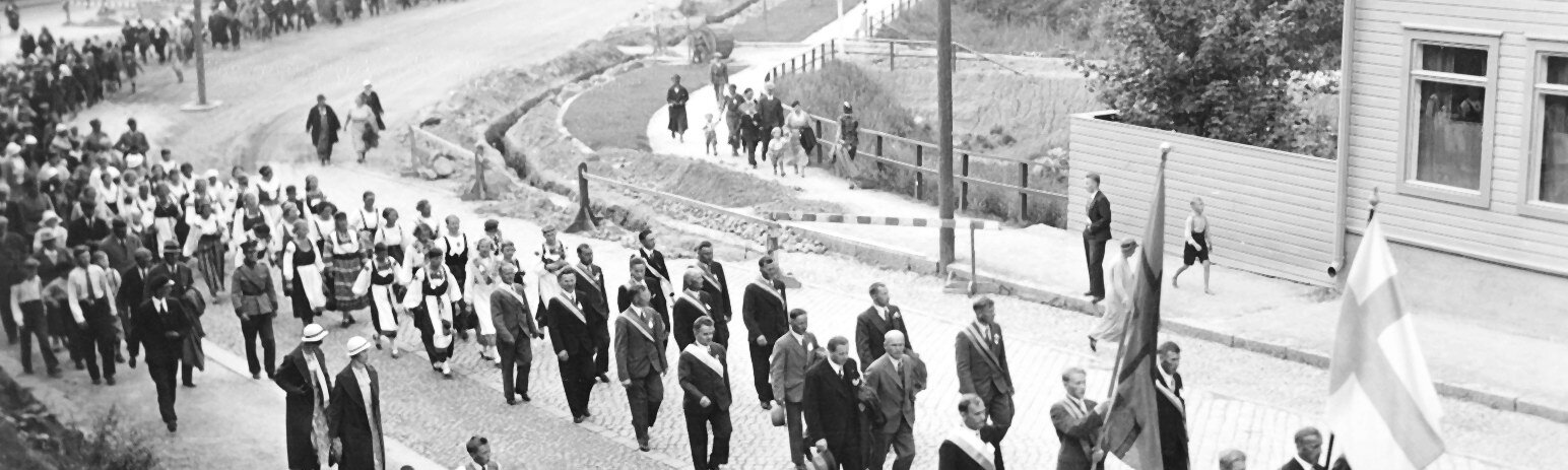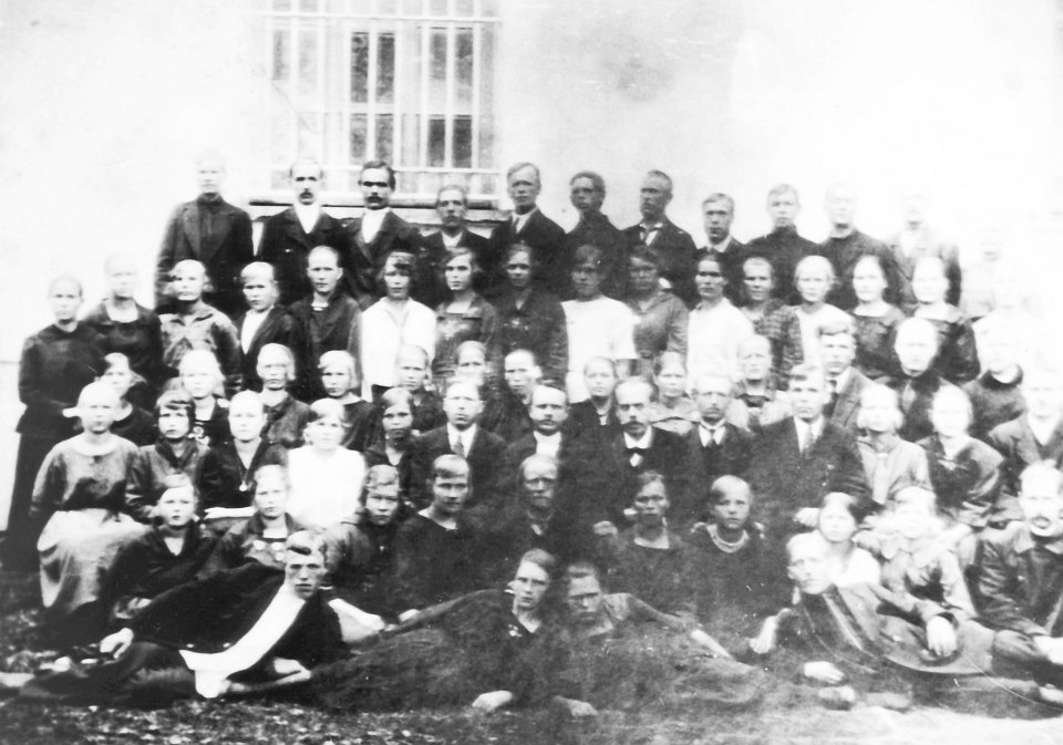 Tuutarin kirkkokuoro, johtaja Emil Suni, 1920-luvun alku. Keskellä S.J.Laurikkala, kanttori Emil Suni. Reprovalokuva.